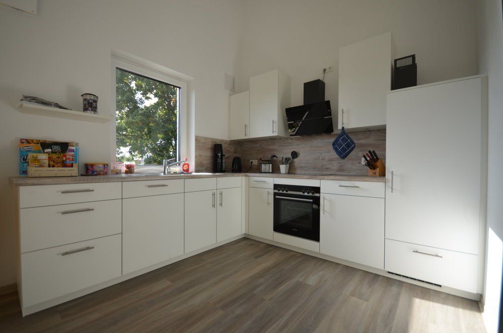 - Einbauküche mit Herd, Kühlschrank und Spüle